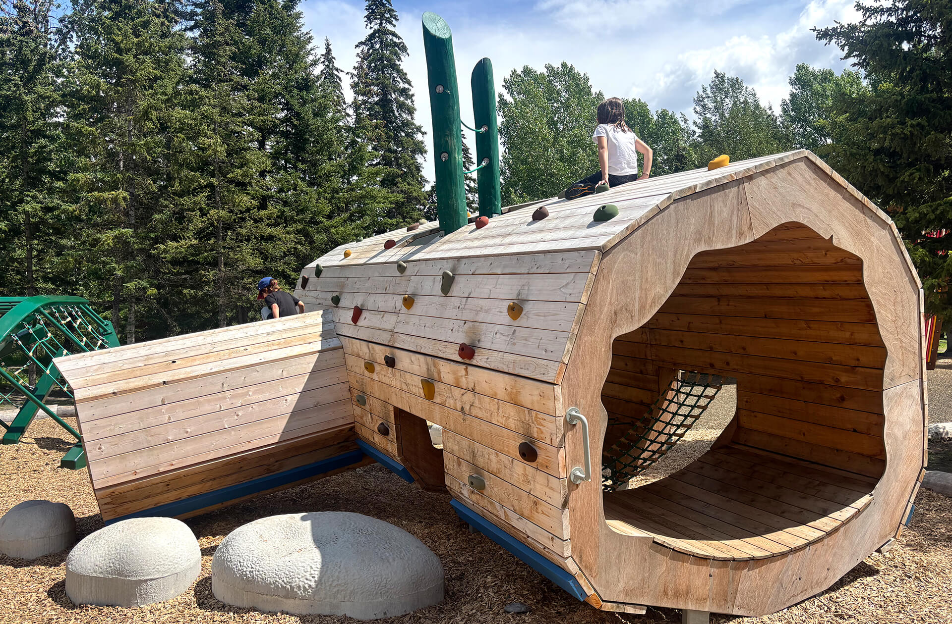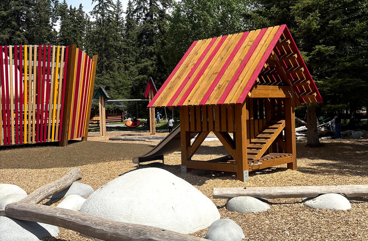 The Adventure and Nature Playground at Sundance Park represents the final phase of the Town of Banff’s ten-year plan to renovate its recreational spaces. This new space, twice the size of the previous one, blends seamlessly into the national park's natural landscape while supporting children’s physical, cognitive, and social development through a nature-based play approach.