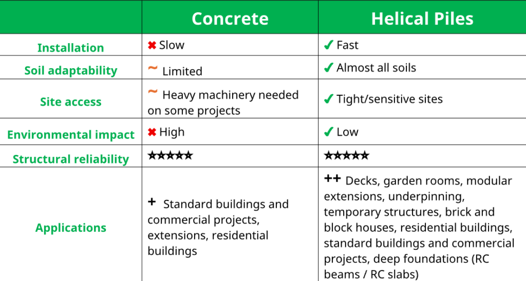 So how do helical piles compare to concrete foundations, and which option is right for your project?
