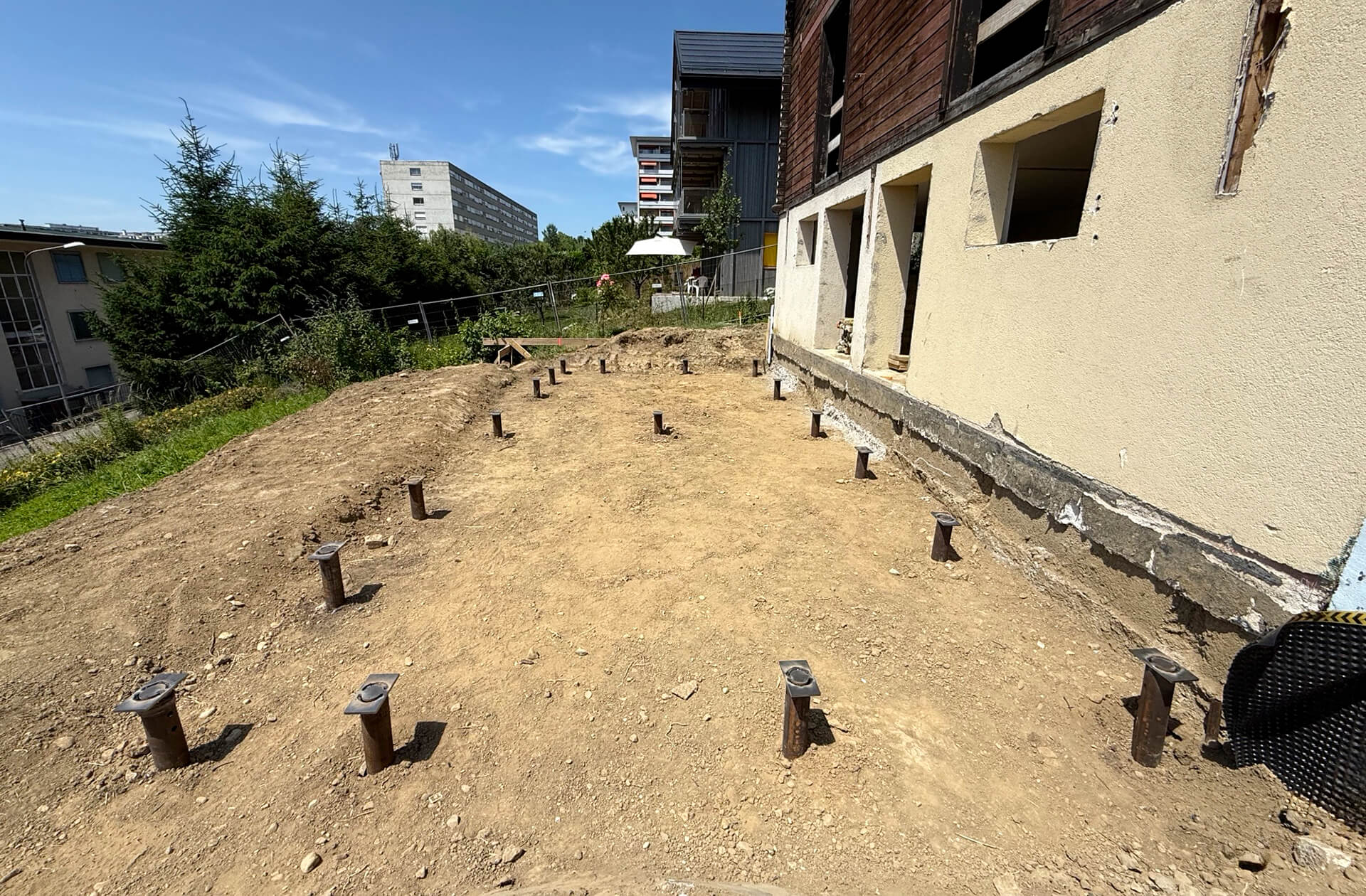 The foundations were completed in only 2 days, demonstrating the efficiency and speed of the Techno Metal Post system for extension and renovation projects.